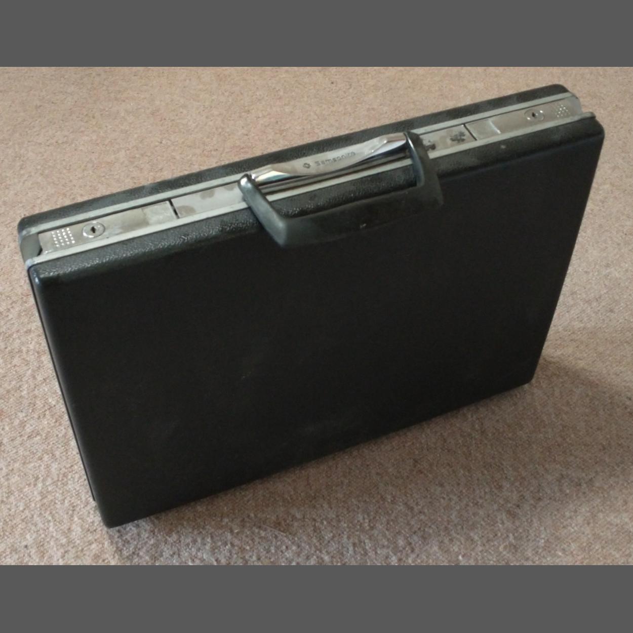 A SAMSONITE C1970's/early 80's attaché case in black and stainless steel trim