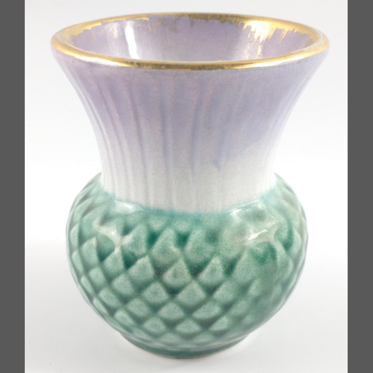 A nice VINTAGE Scottish Thistle inspired small vase in purple and green stamped FOREIGN to base