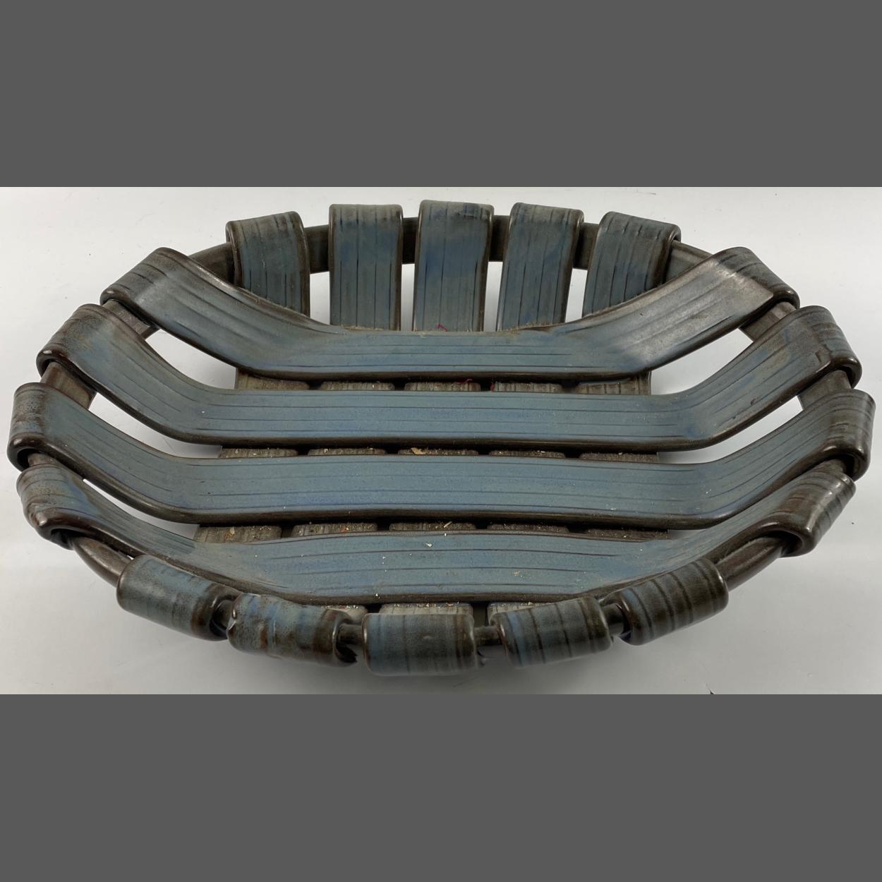 Unusual blue/grey LATTICE WORK pottery fruit bowl approx 37cm long