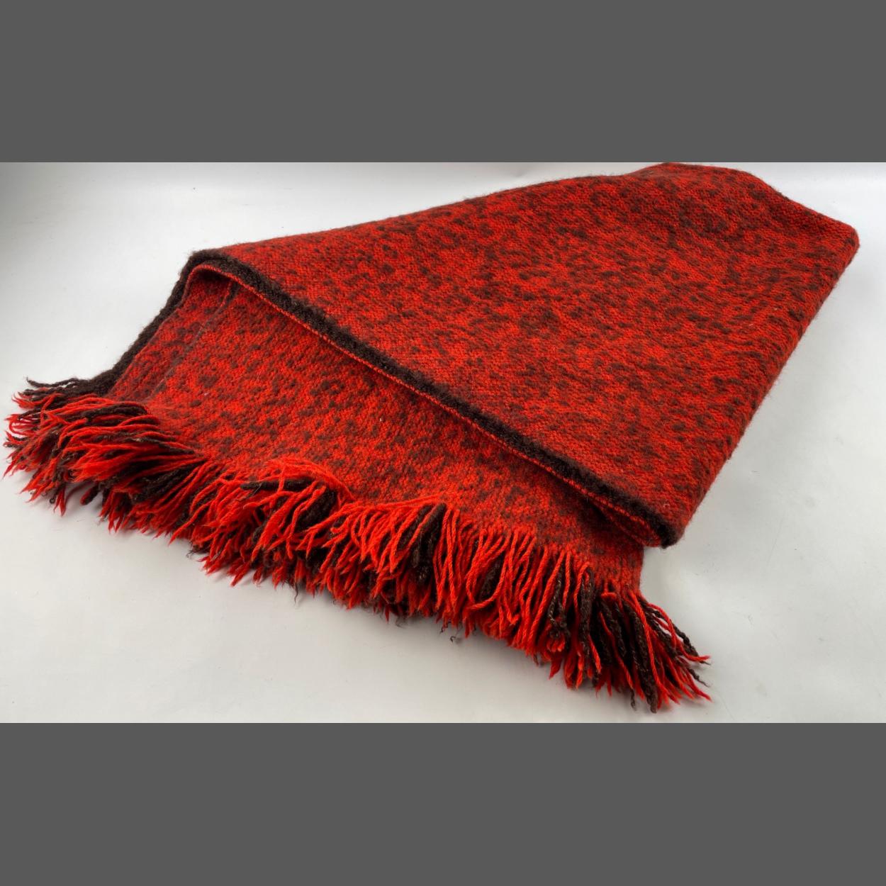 RETRO TRAVEL RUG twin-sided VOLCANIC ORANGE with brown boucle on reverse side, a real heavyweight rug.