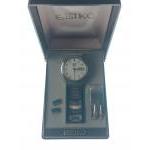 A NICE SEIKO automatic day and date-just gents wristwatch in white metal with spare bracelet links all within its original jeweller's presentation case