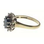 375 hallmarked ring with a blue stone and diamonds, 3.16g gross weight, Size P