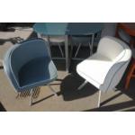 Modern glass topped bi-coloured square table with 4 corner seats