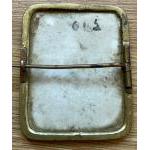 An ANTIQUE hand painted enamelled small pinned badge with a yellow metal style surround 4cm x 3cm