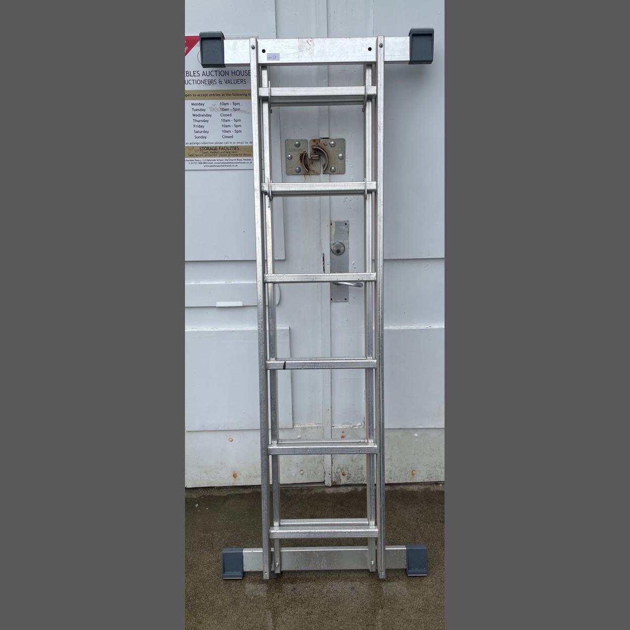 A GOOD QUALITY set of 6 step aluminium extending by another 6 steps with top and bottom stabilisers