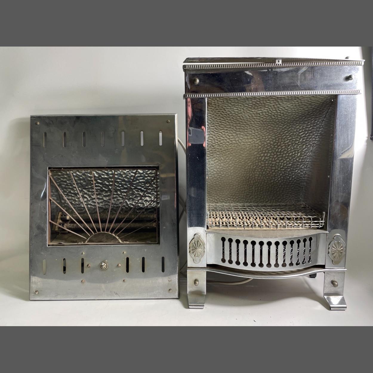 2 Vintage late 1930s ART DECO electric fires in steel (one with sunburst). Sold for architectural interest - would need tested/rewired by qualified electrician if wanted working