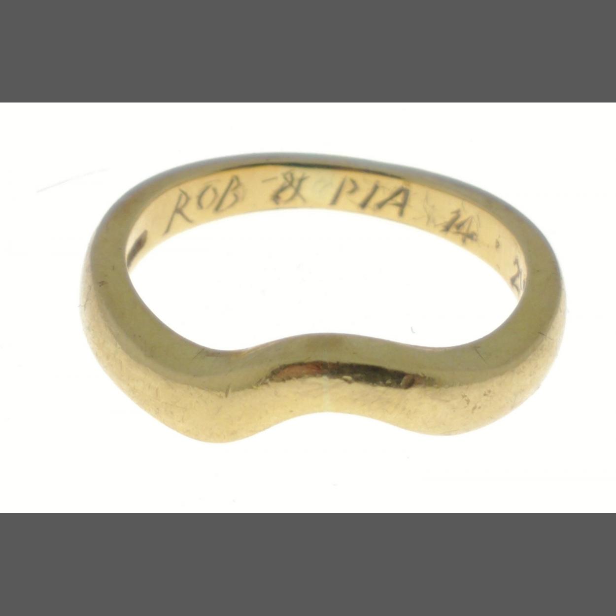 A 750 stamped 18ct yellow gold ring made in DUNBLANE for the customer weight 5.55g approx ring size N