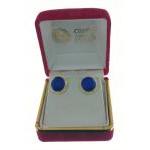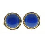 14k 585 stamped yellow gold pair of earrings with a large blue stone centred in each 4.1g gross weight approx(can be clip-on or stud!)