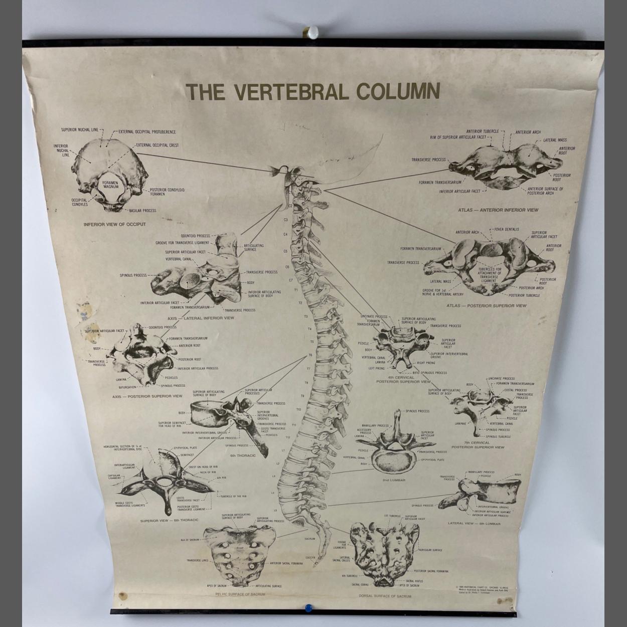 THE VERTEBRAL COLUMN wall chart ANATOMICAL CHART CO ILLINOIS c1980