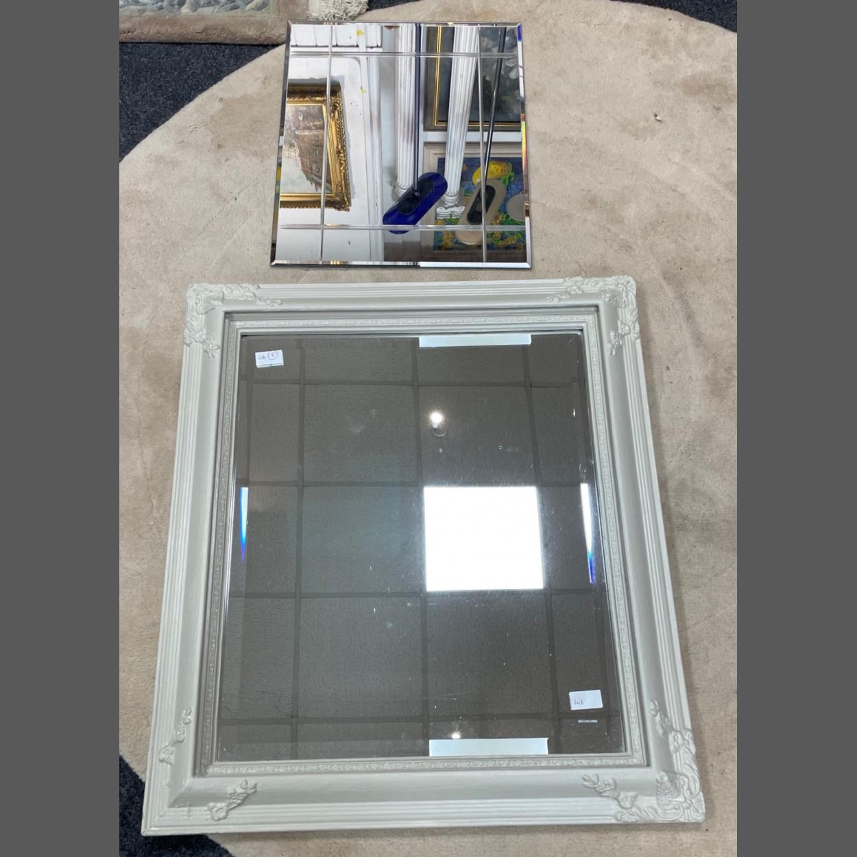 A BEAUTIFUL IN-VOGUE vintage wall mirror hand painted in light grey with moulding effect - quite beautiful! Plus a new still in packing v- groove mirror 50 x 40cm