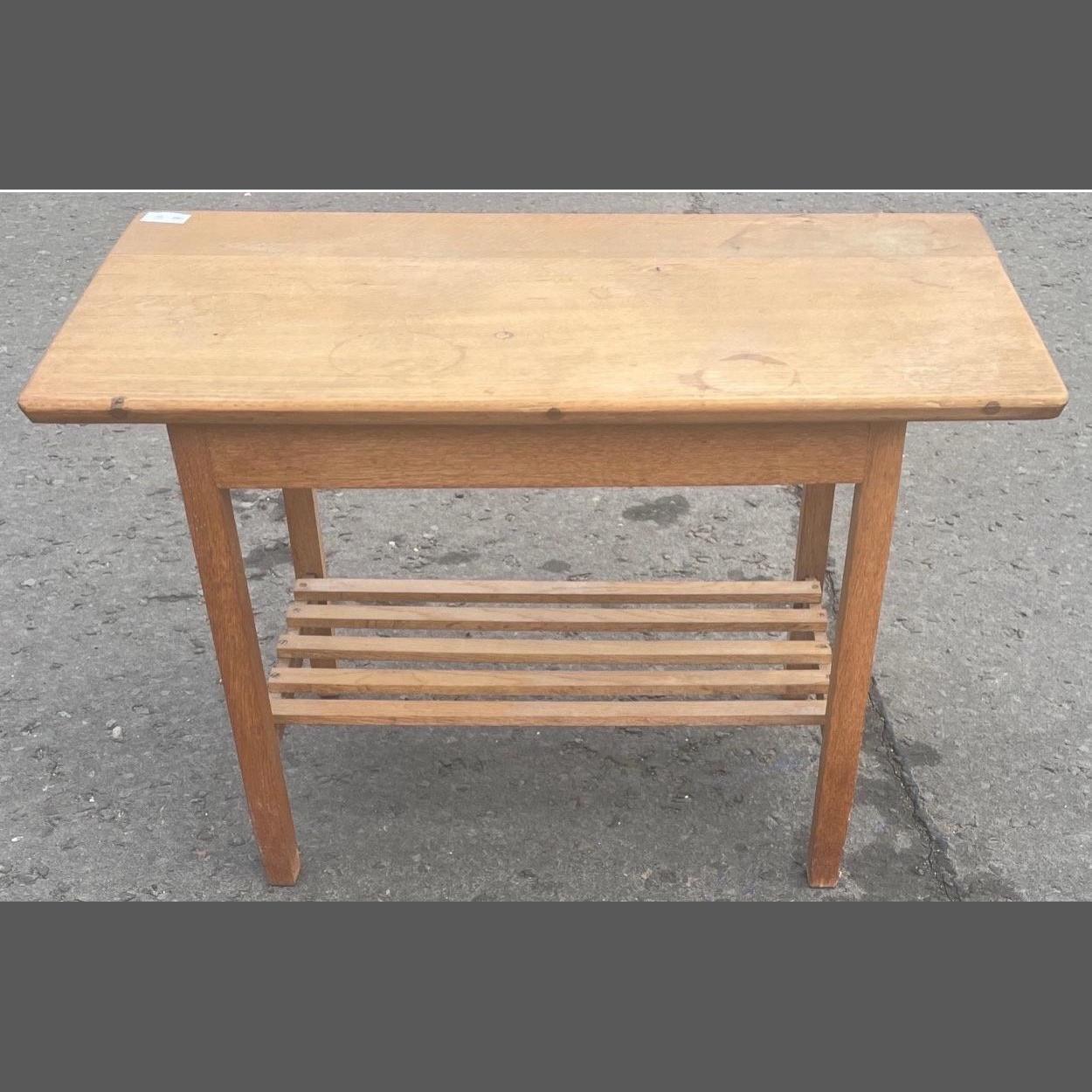 C1980's style Small light wooden COFFEE TABLE with racked lower magazine shelf