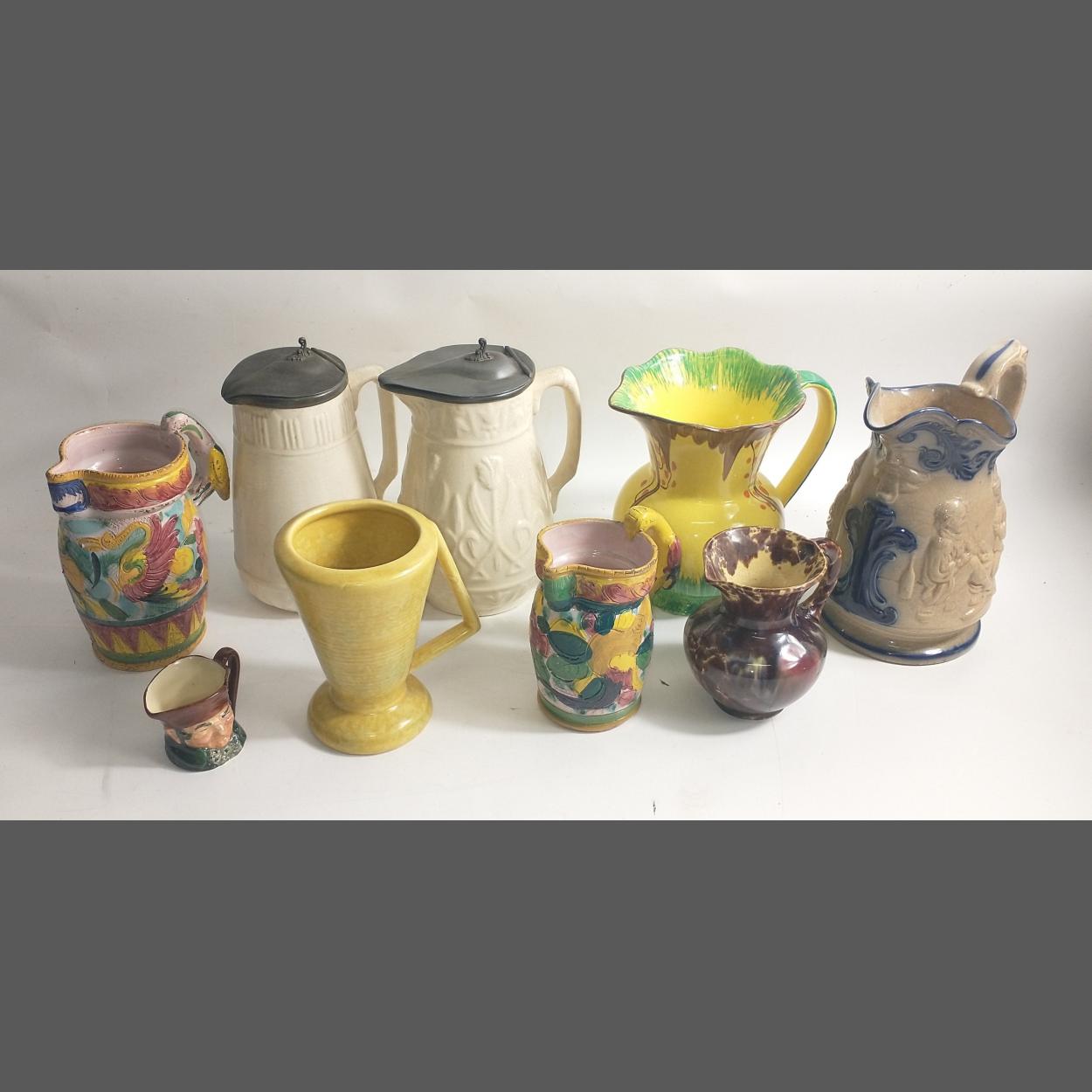 A collection of 8 VINTAGE jugs of varying sizes and designs including 2 with lids, the tallest being approx 20cm tall.