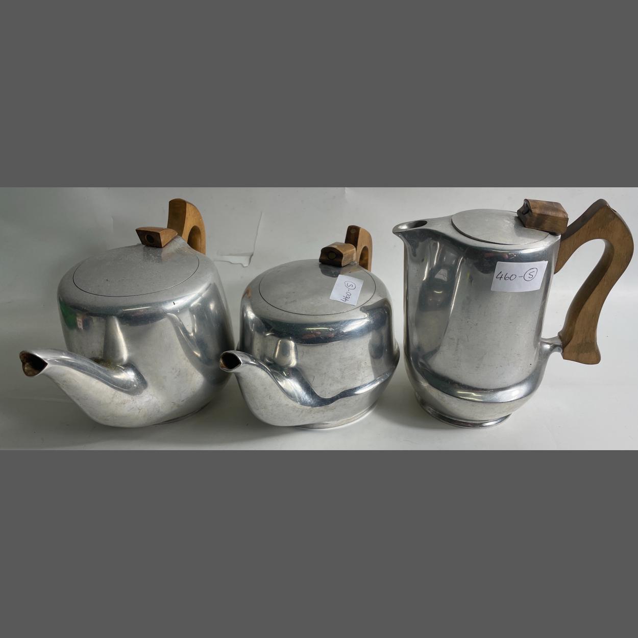 VINTAGE PICQUOT WARE teapot, coffee pot and hot water.