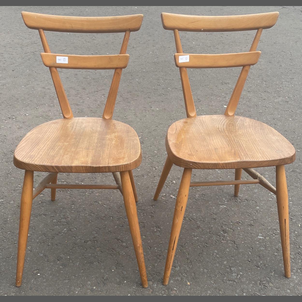 RARE AND SO COOL!! A pair of light wood ORIGINAL ERCOL GREEN DOT Stacking Side Chairs from ERCOL1960s