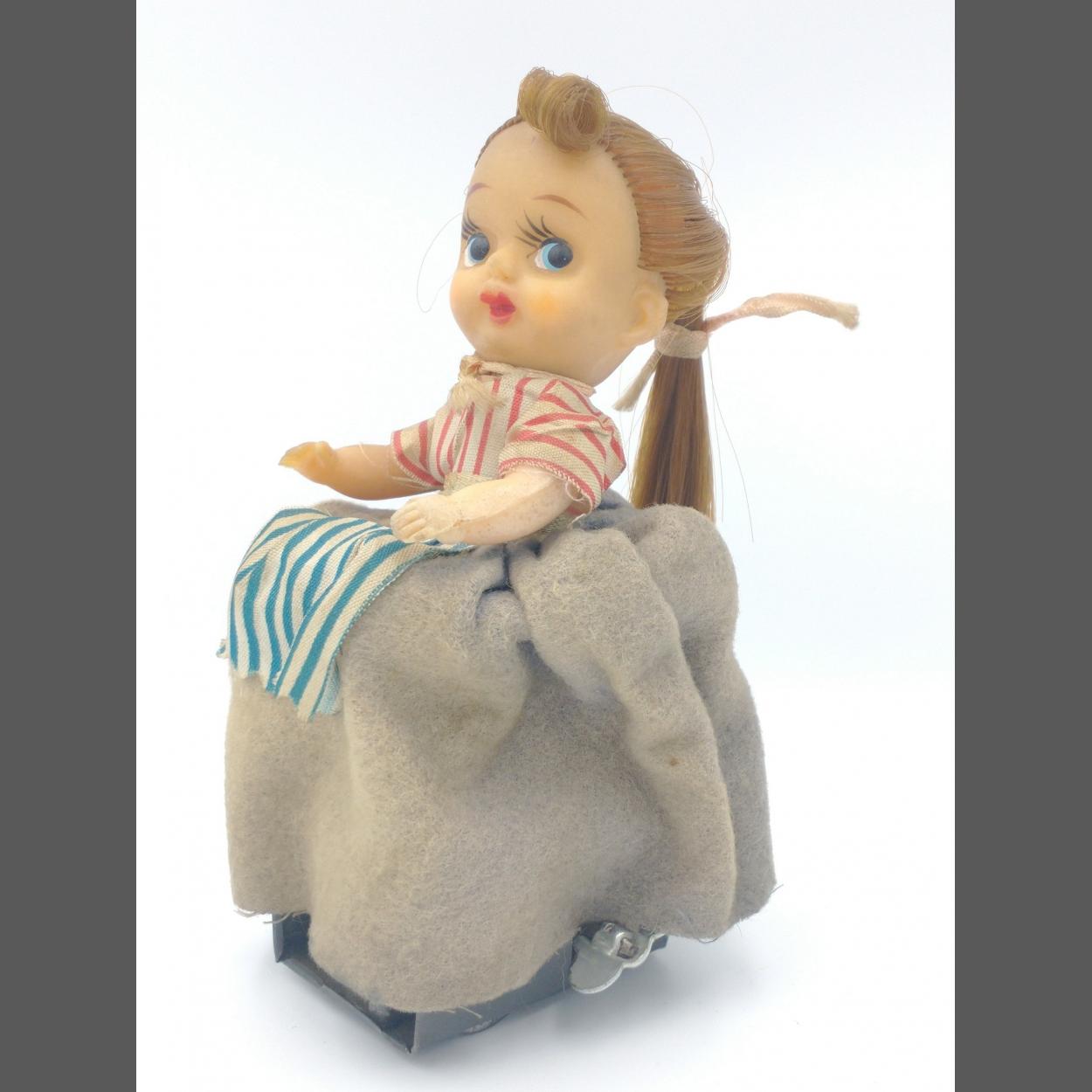 VINTAGE wind-up walking doll standing approx. 25cm tall, made in Japan.