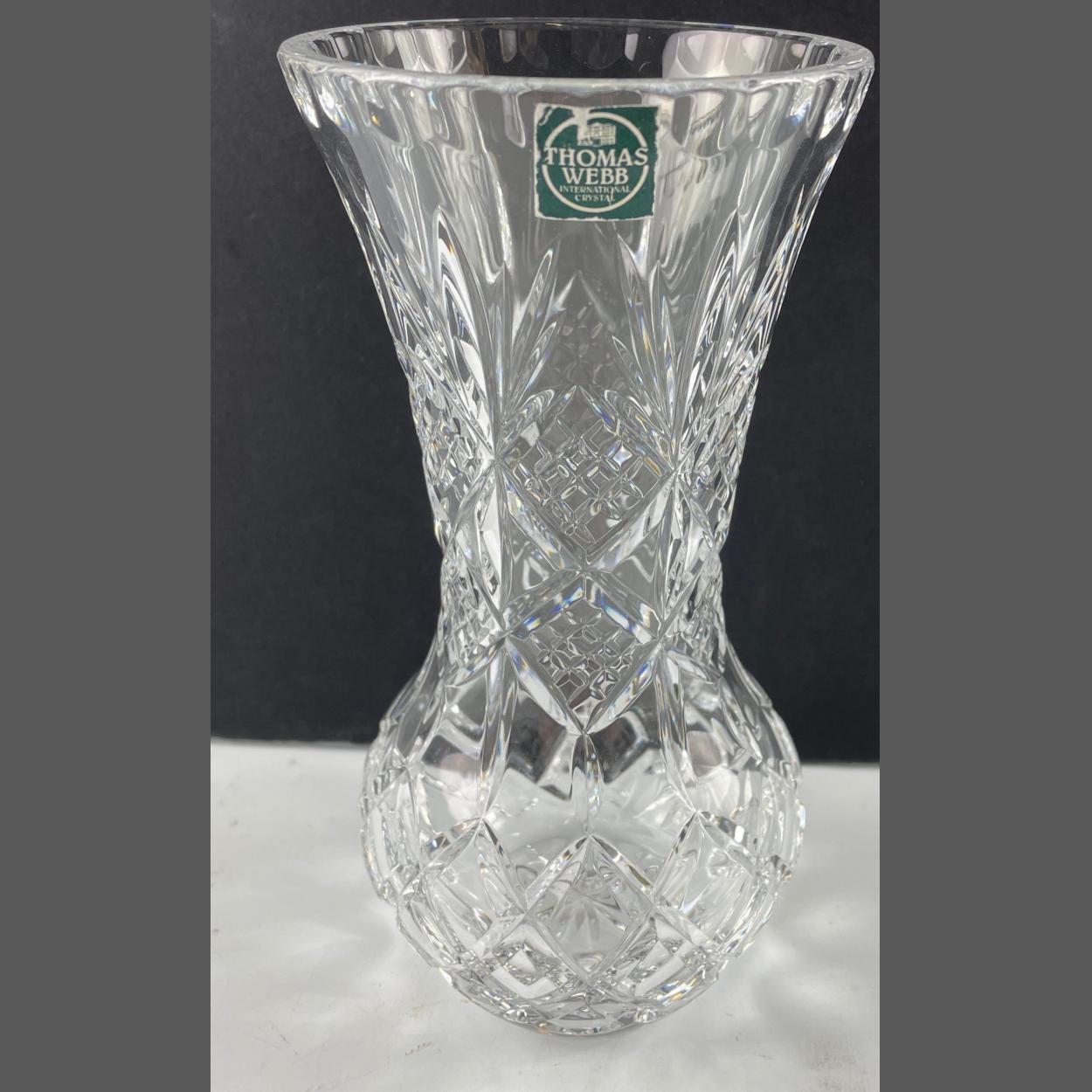 THOMAS WEBB crystal 20cm vase still with original label and wrappings