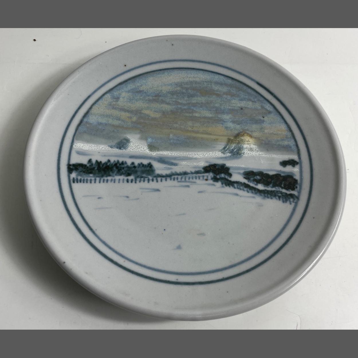 A BEAUTIFUL HIGHLAND STONEWARE pottery plate with country scene