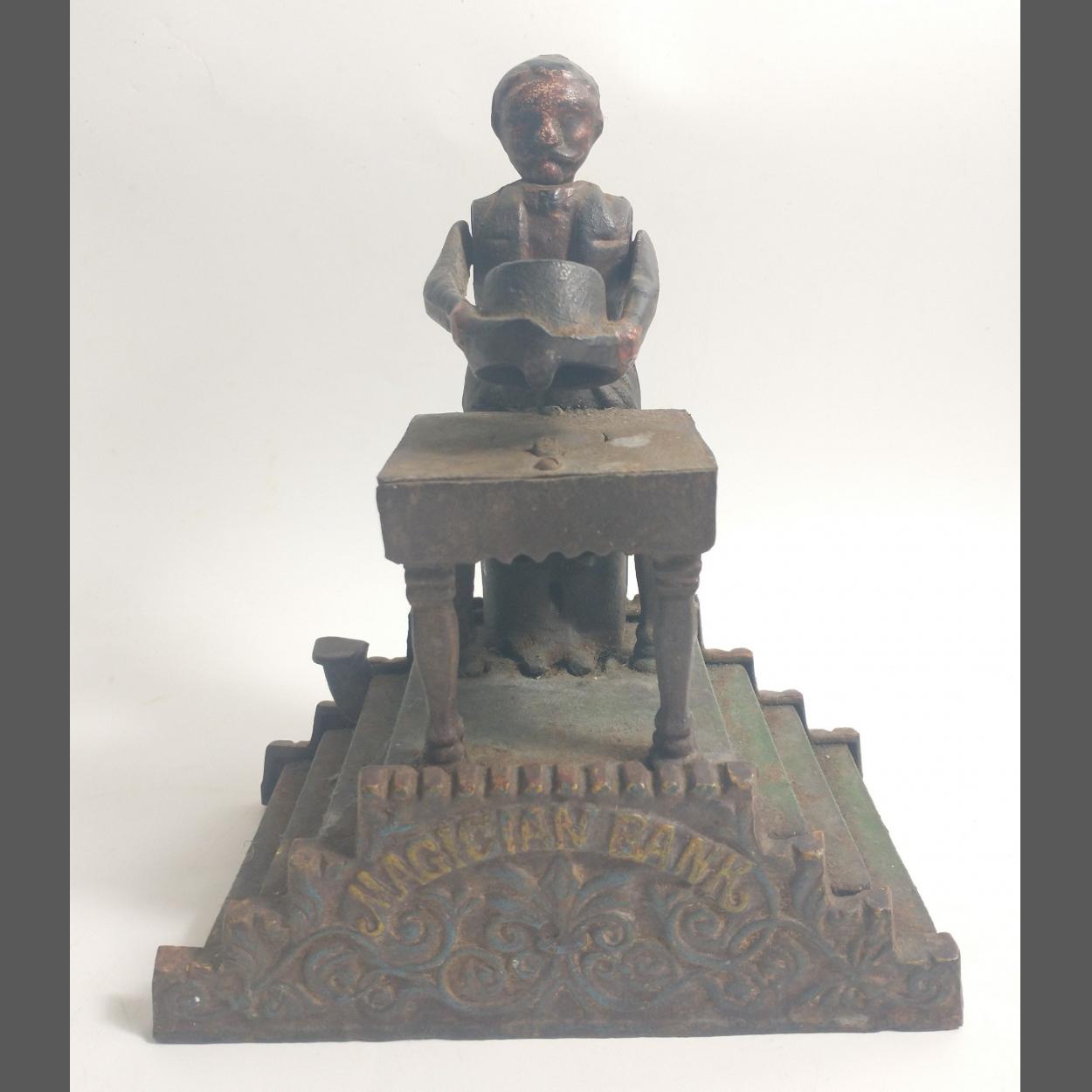 VINTAGE cast iron MAGICIAN BANK mechanical money box standing approx. 20cm high