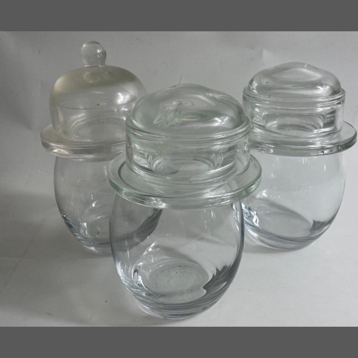 3 VERY NICE QUALITY heavy bottomed glass tumblers and three SMALL NICE SOLID GLASS LIDDED BUTTER COVERED DISHES, one with raised glass insects approx 7cm diameter and 7cm high approx