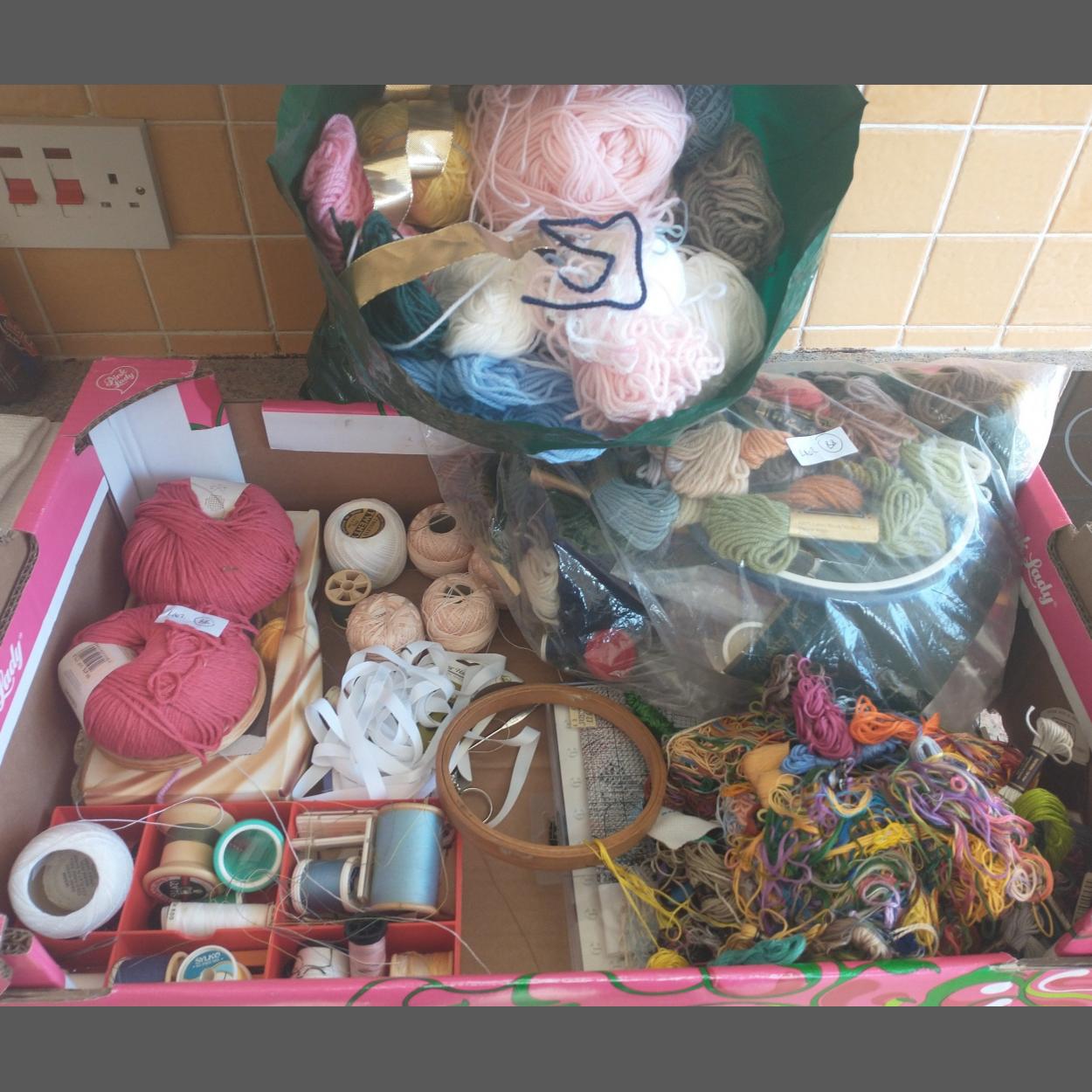 A large quantity of SEWING BEE wool and knitting and sewing items and lots of bobbins of threads as per picture -