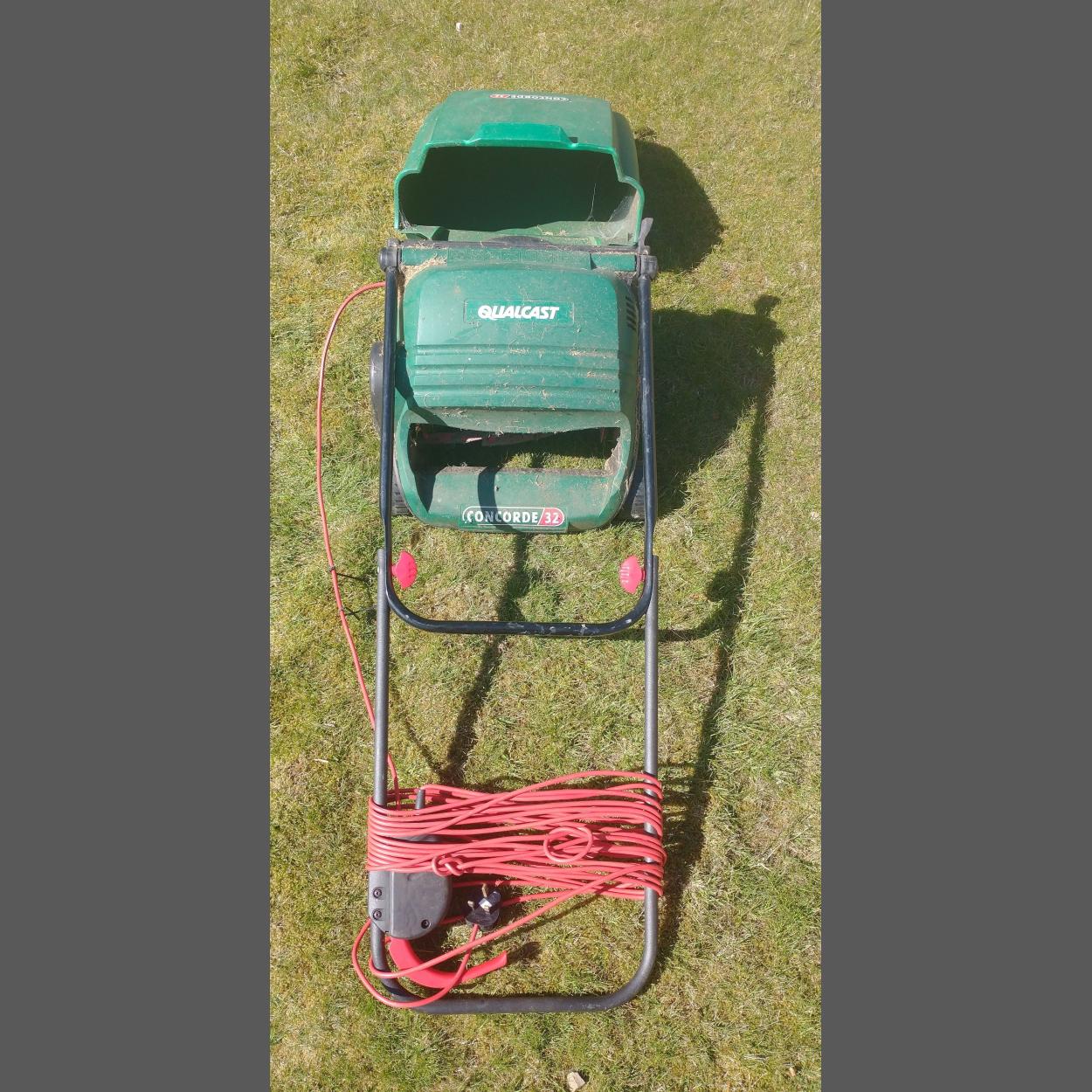 Qualcast Concorde 32 electric lawnmower with grassbox. Had undated service tag