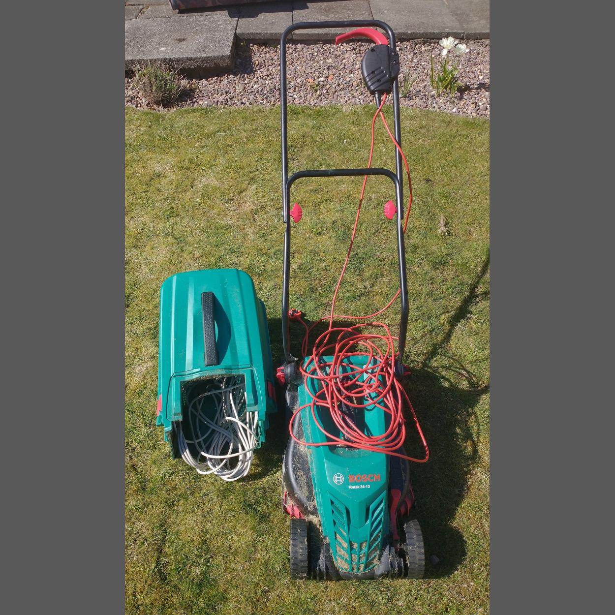 BOSCH Rotak 34-13 electric lawnmower with grassbox and extension cable