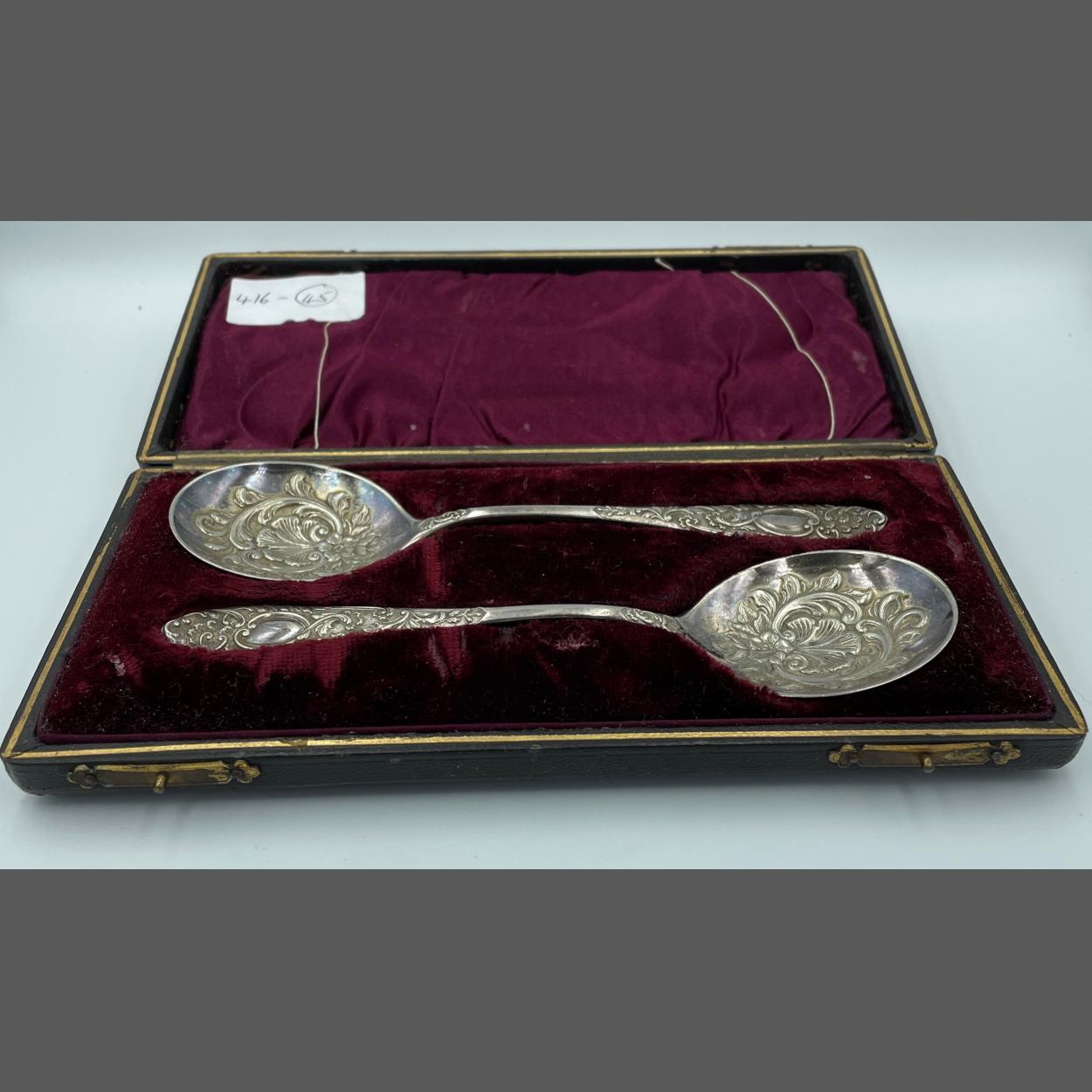 Pair of VINTAGE EPNS TT & Co highly decorated spoons in their original box.