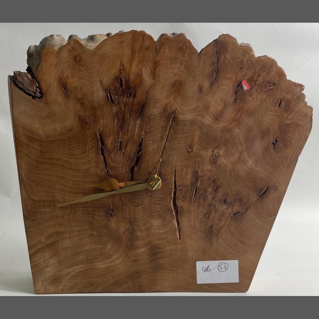 UNUSUAL wooden clock made from a single piece of wood with a quartz clock movement.