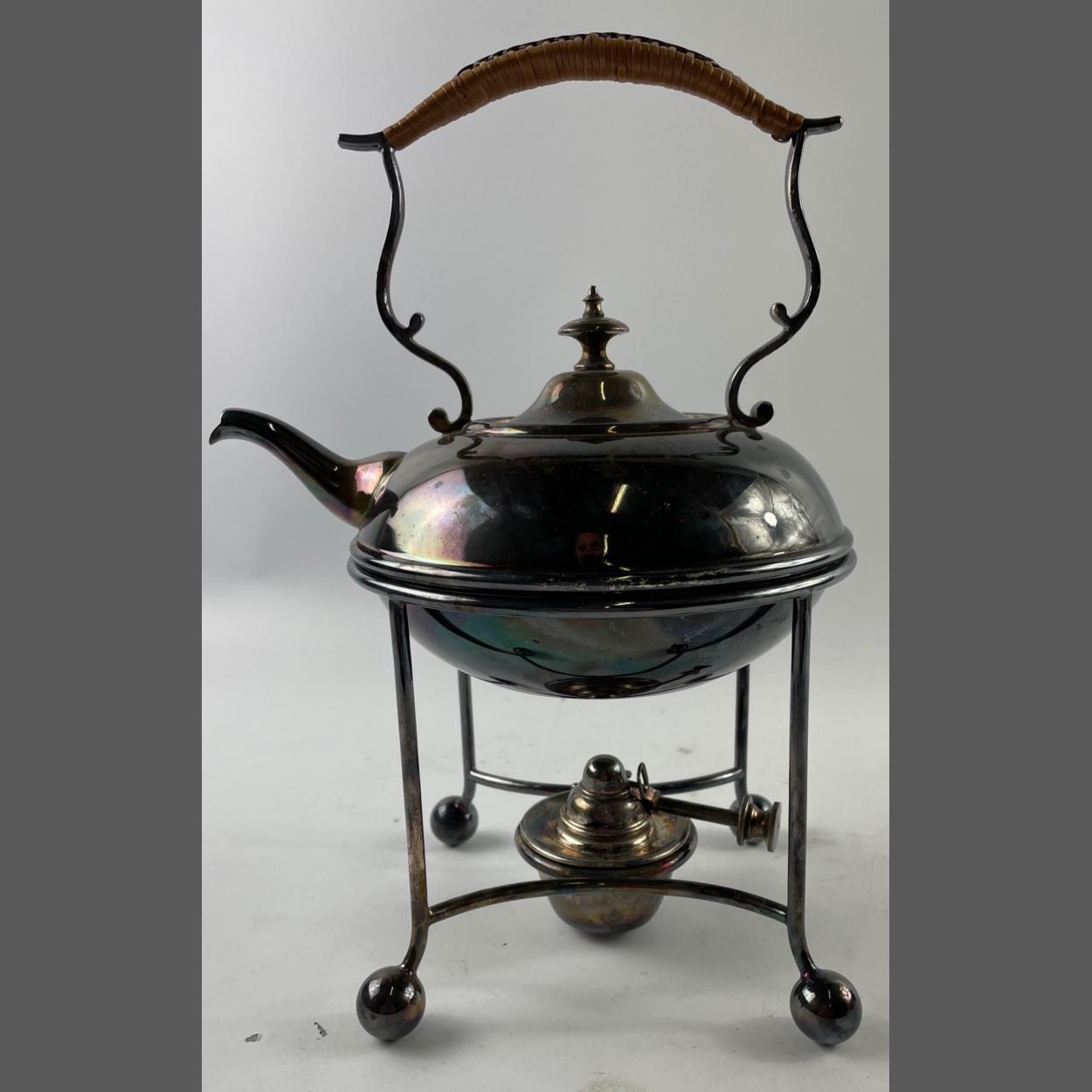 BEAUTIFUL PATINA - a stunning SPIRIT KETTLE standing 30cm high with its stand and its warming burner. A lovely object.