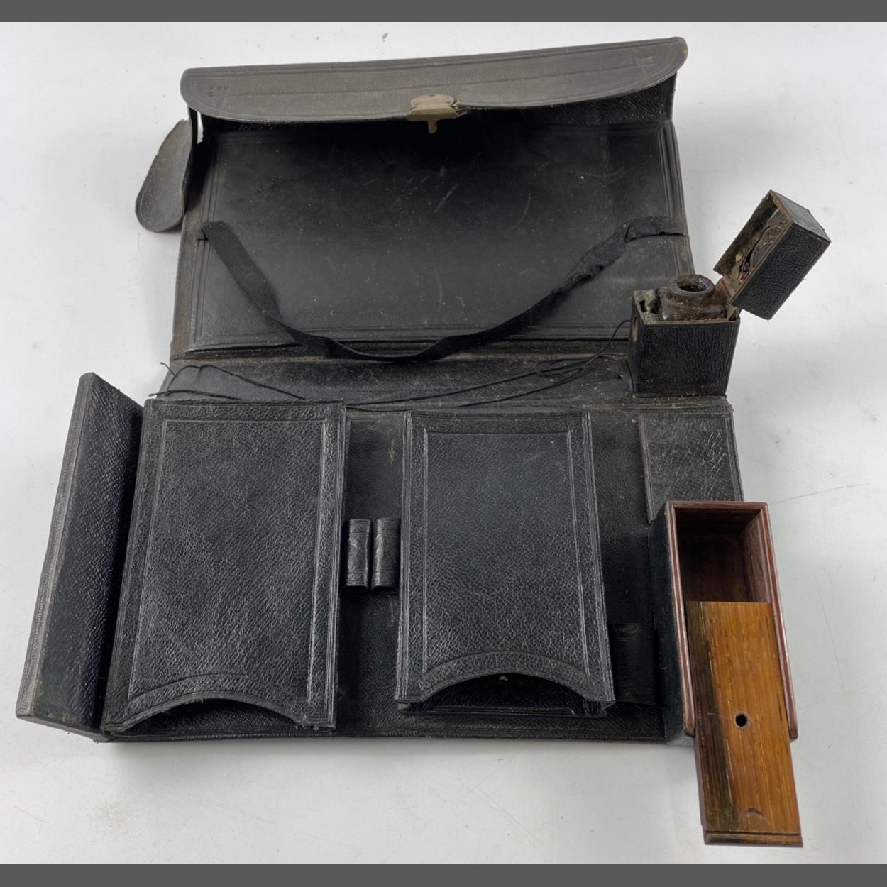 Vintage LEATHER PORTABLE WRITING CASE made by ROBINSON 138 STRAND. Lovely little case with handle, inside has a case for a bottle of ink, box for pen nibs, slots for calling cards, paper etc.