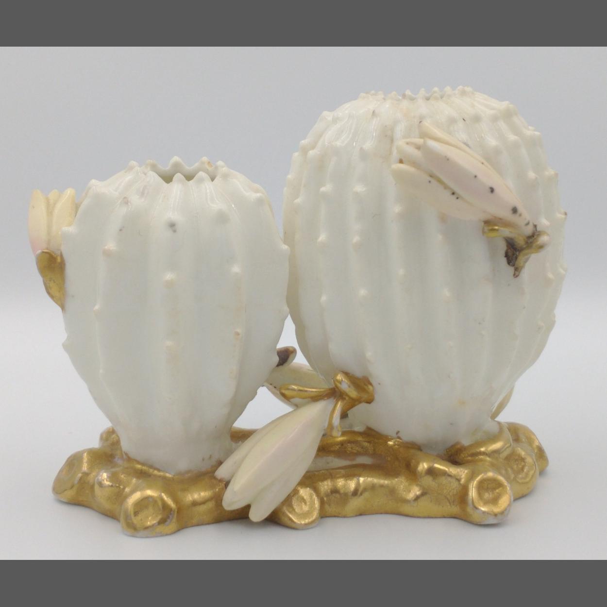 MOORE BROS. ANTIQUE miniature ceramic cactus vase stands approx 8cm high.
