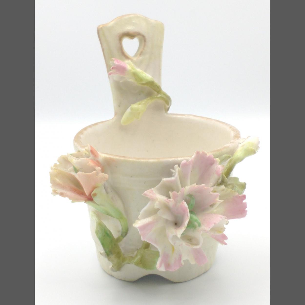 Pretty little (8cm) MEISSEN style wall-hanging posy vase 7cm tall approx