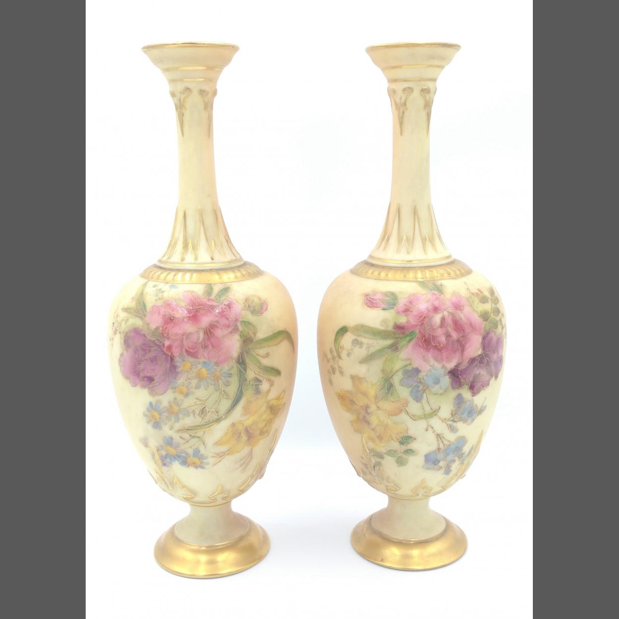 Pair of VINTAGE ROYAL WORCESTER narrow necked vases approx 20cm high