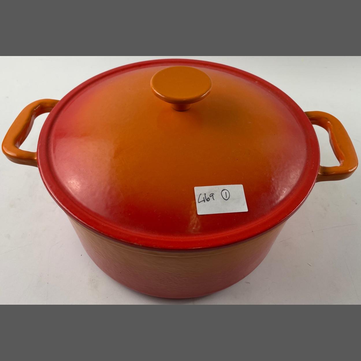 LE CREUSET style lidded deep casserole dish in traditional VOLCANIC ORANGE 25cm diameter x 12cm deep UNUSED GIFT