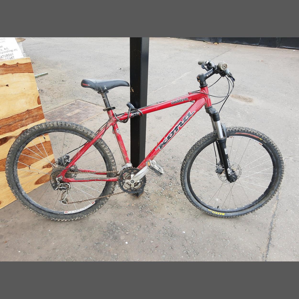 A KONA branded gents mountain bike in red livery 1m from ground to top of handle bars