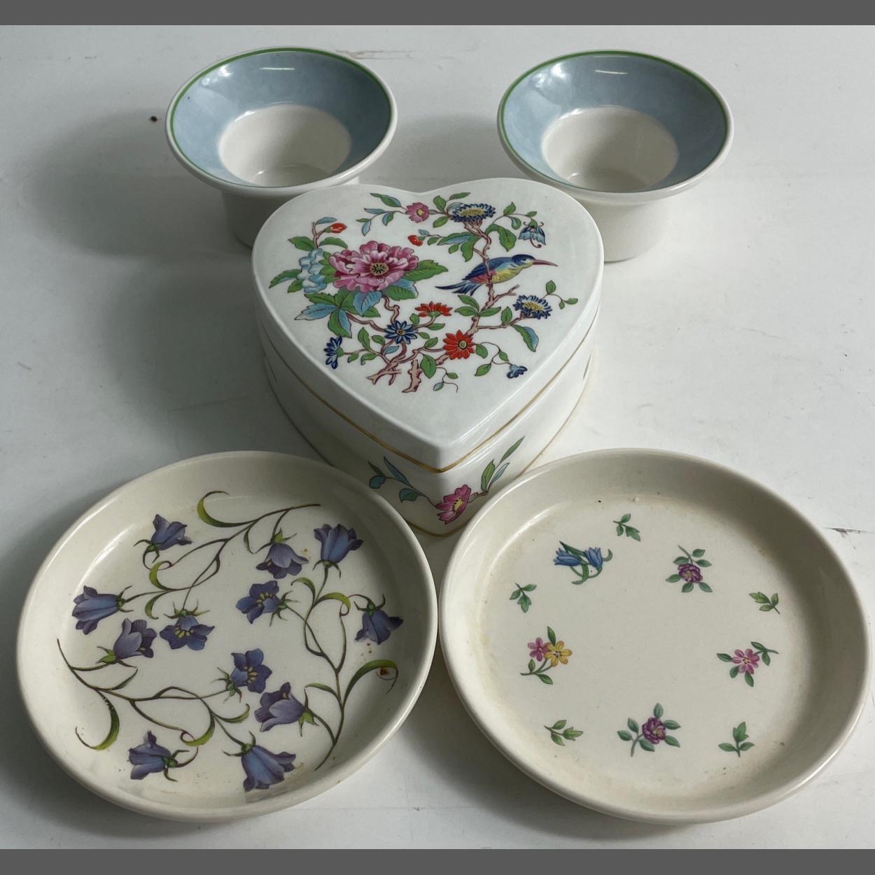 A QUALITY LOT to include AYNSLEY PEMBROKE trinket box (10cm), 2 SPODE floral dishes (10cm approx) and 2 VILLEROY and BOCH eggcups.