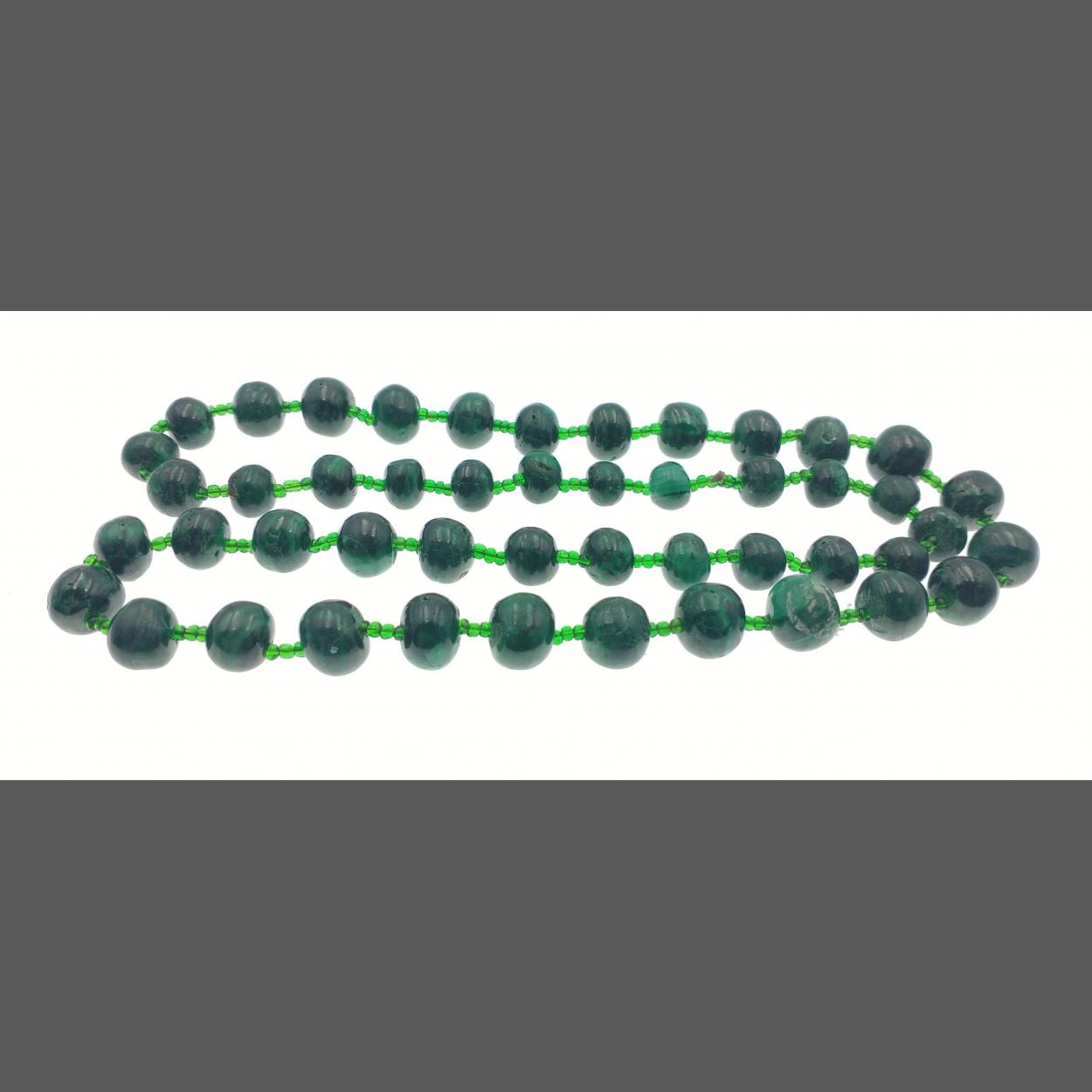 Malachite style string of beads with emerald coloured spacer beads [68cm lenth]