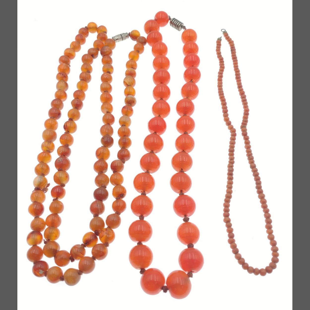 Small string of VINTAGE coral beads and 2 coral coloured strings of beads