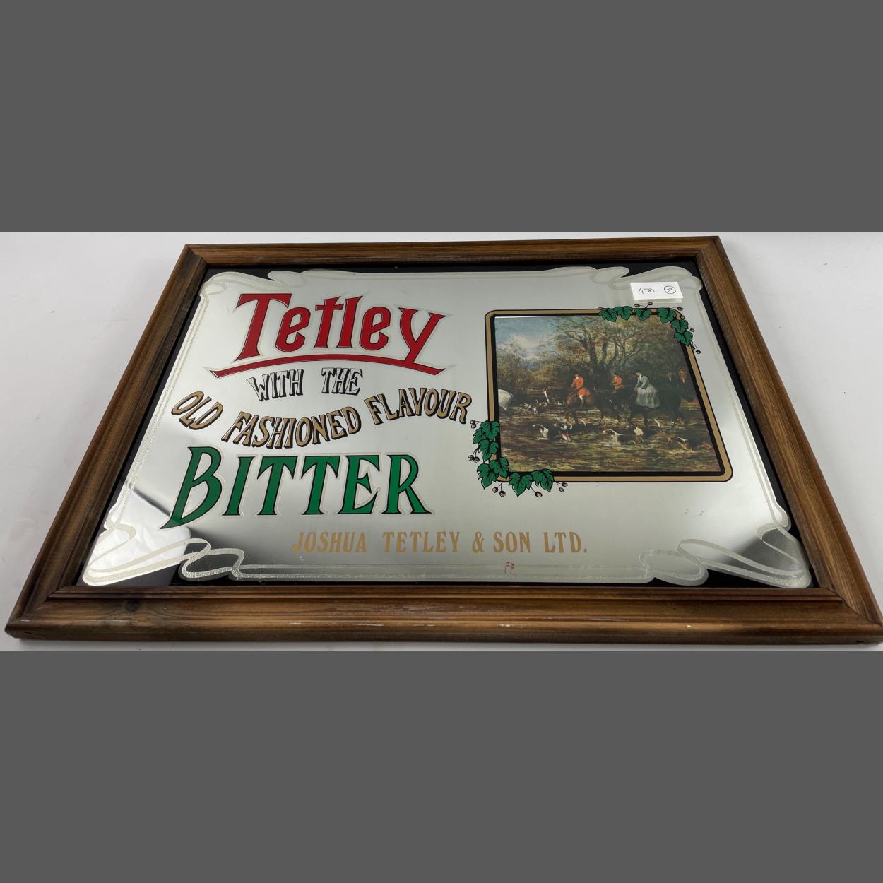A TETLEY BITTER framed pub style mirror 47cm x 34cm