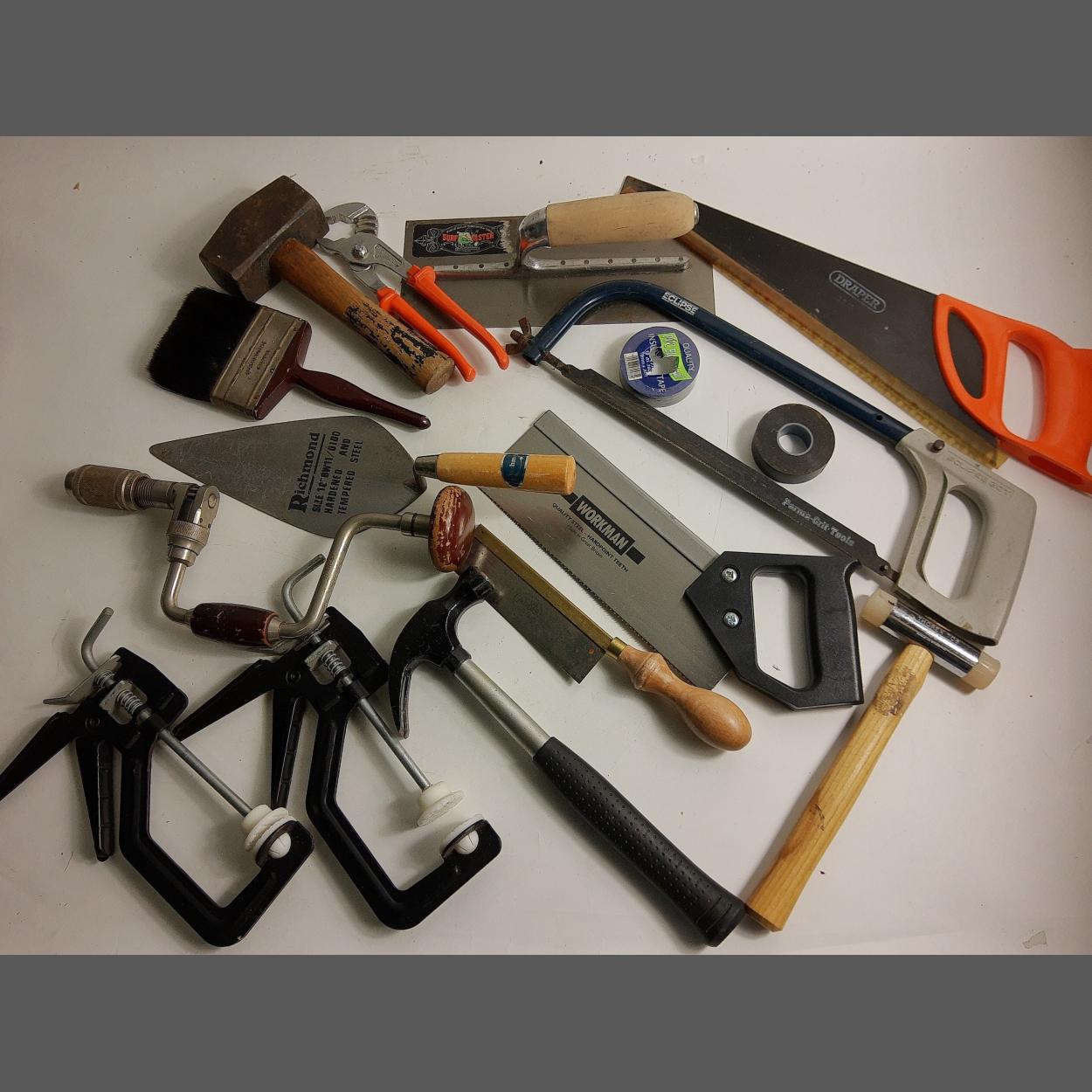 HAND TOOLS FOR THE DIY AFICIANDO - a collection to include hammers, saws, trowels, hand-drill, vices etc. A very useful lot.