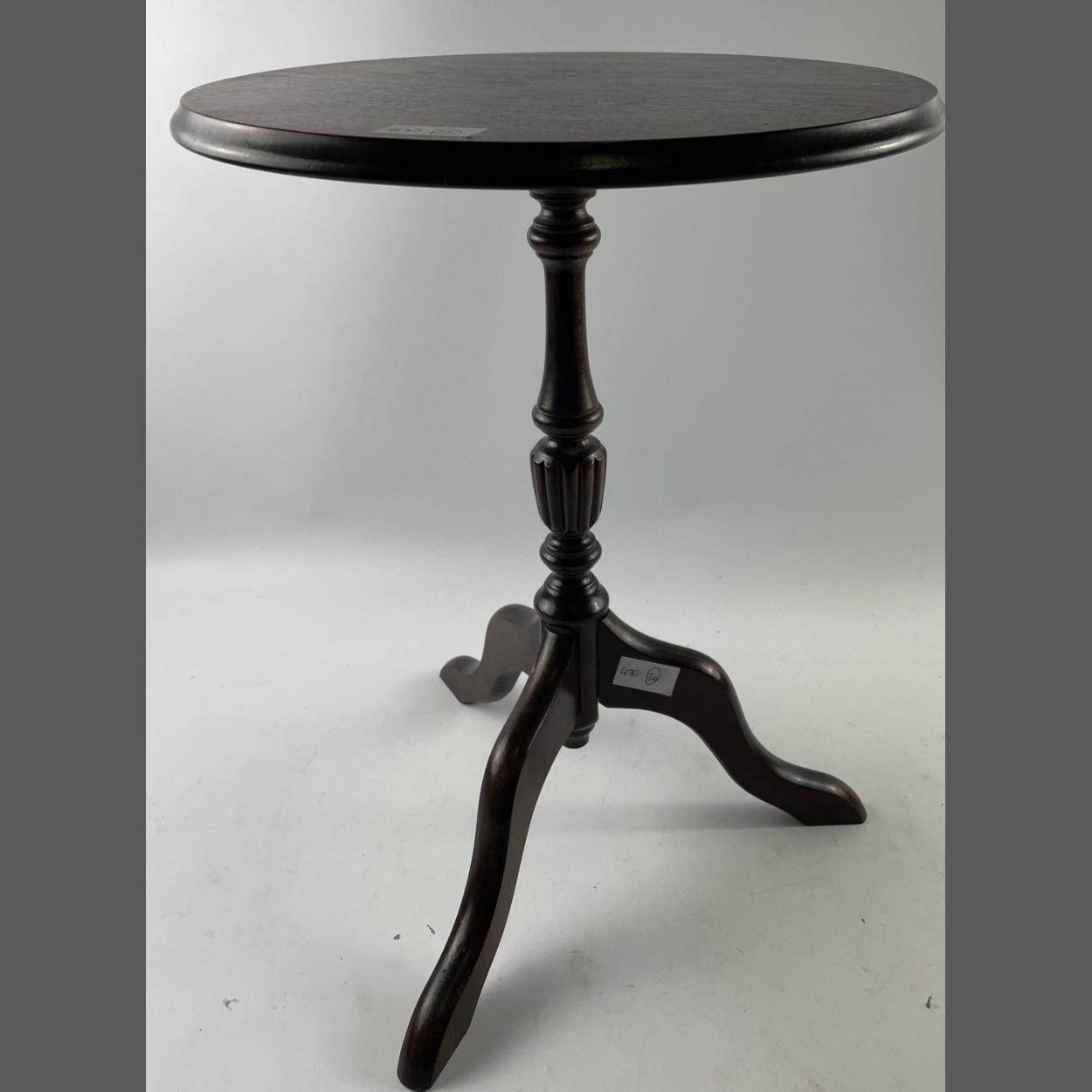 A nice wee WINE TABLE in dark wood on tripod legs 50cm high x 37cm diameter
