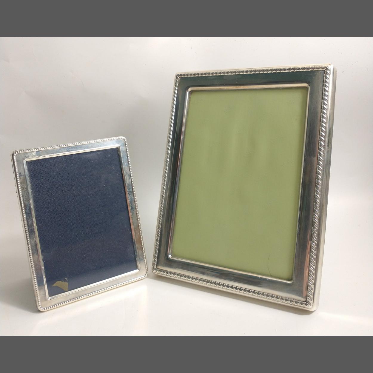 A SILVER Hallmarked photo frame 15cm x 11cm and also a larger SILVER 925 stamped photo frame 22cm x17cm