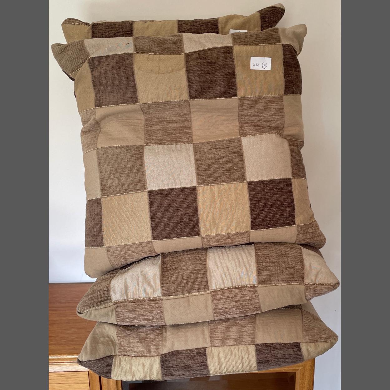 FOUR NICE QUALITY cushions in a chequered pattern 43cm square approx