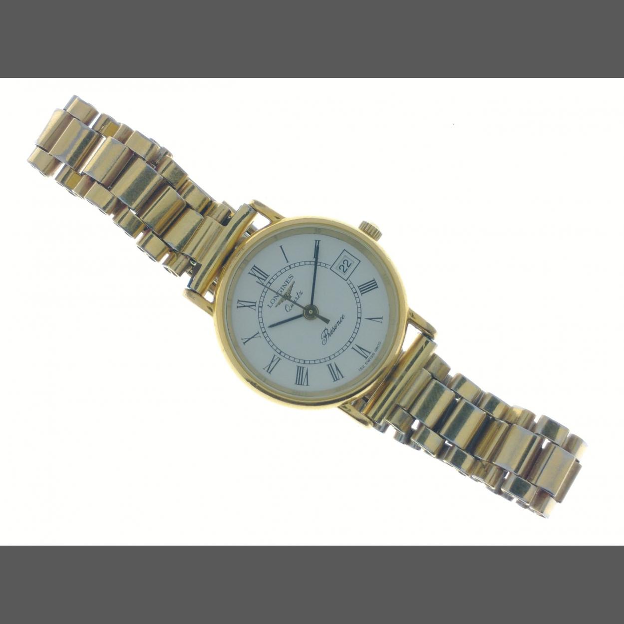 Longines presence ladies wrist watch with stainless steel back and Roman numerals and date dial. Hands move but needs replacement battery. Back stamped 24346735