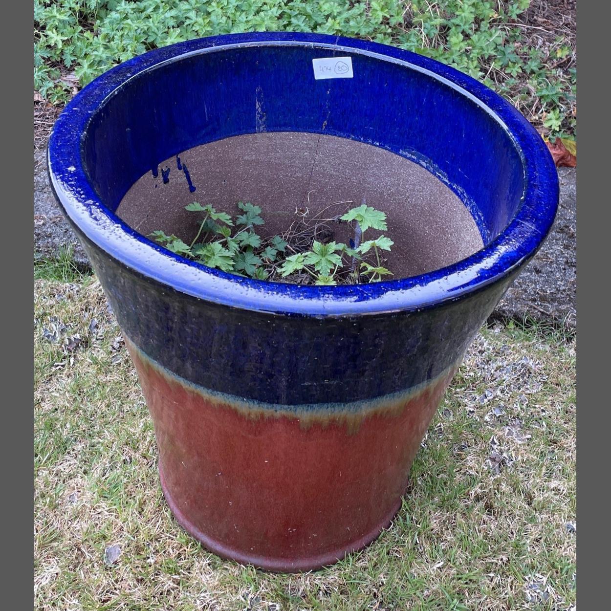 A WHOPPER tallish GARDEN CONTAINER twin- coloured 42cm x 40 cm height( planter has a crack down one side)