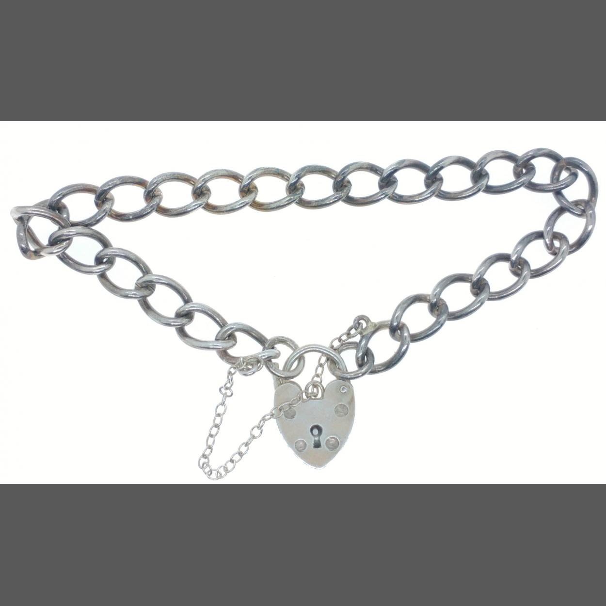 Birmingham hallmarked silver bracelet with heart shaped lock [20cm approx]