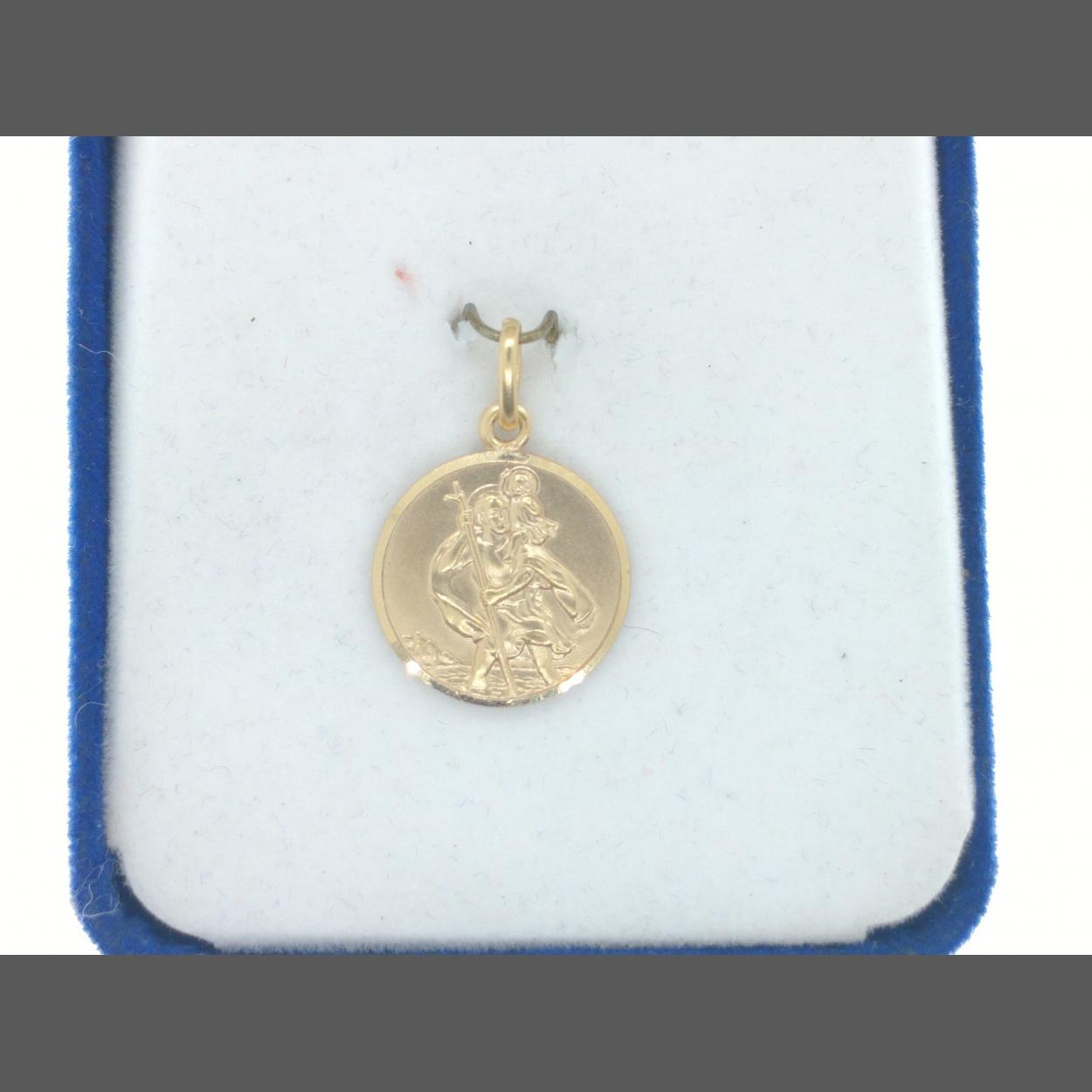 10k Stamped Yellow Gold small St Christopher charm/pendant [1.25cm diam ]