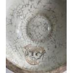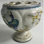 VINTAGE T FORESTER PHOENIX WARE rose bowl with pierced lid, stands 16cm tall with a design of peacocks, plus 2 plant pot holders ressembling ropework, 1x 15cm high, the other 11cm approx.