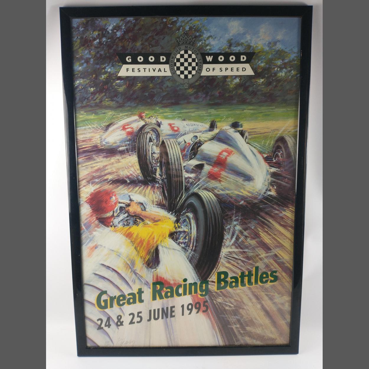 A large GOODWOOD FESTIVAL OF SPEED framed poster depicting Great Racing Battles 24th & 25th June 1995 within a smart glossy black frame