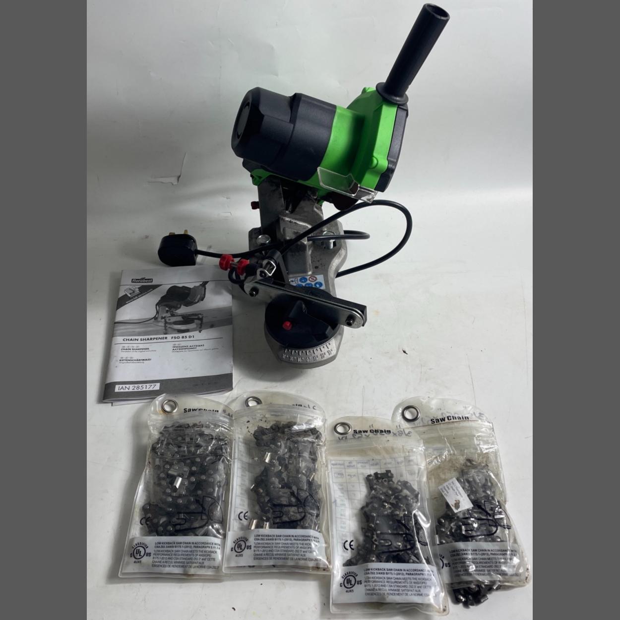A FLORABEST CHAINSAW SHARPENER FSG 85 D1 with booklet